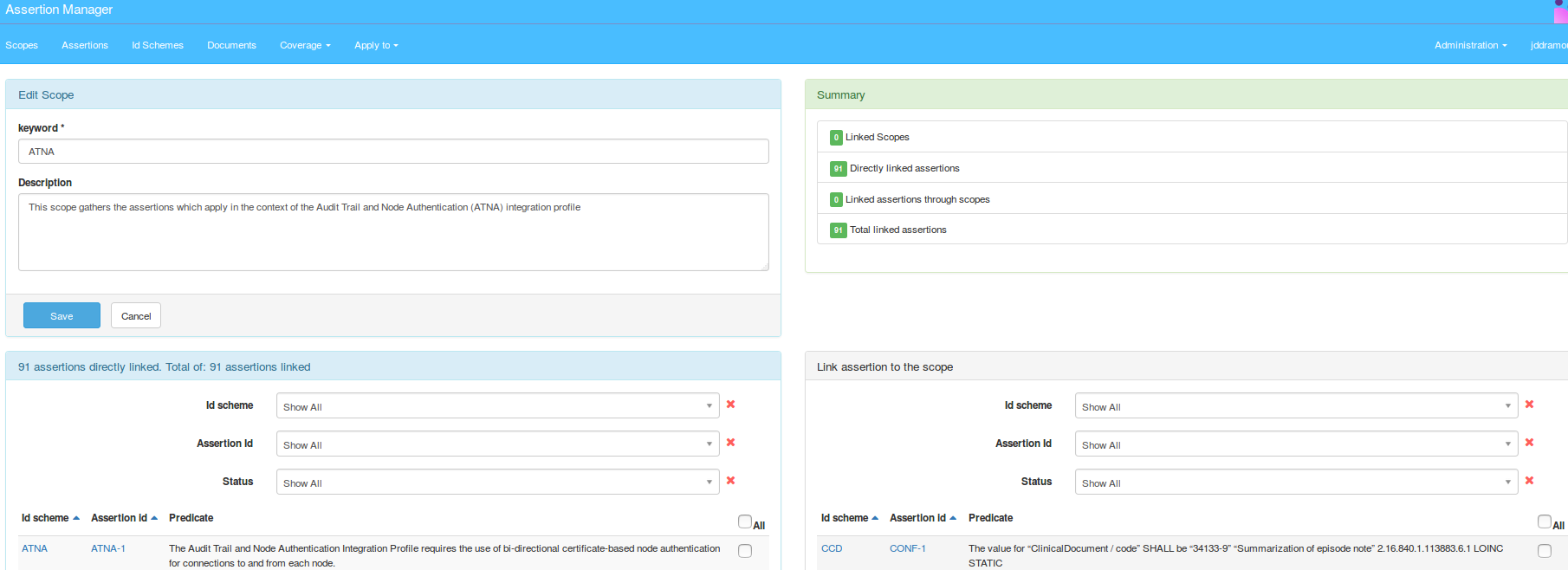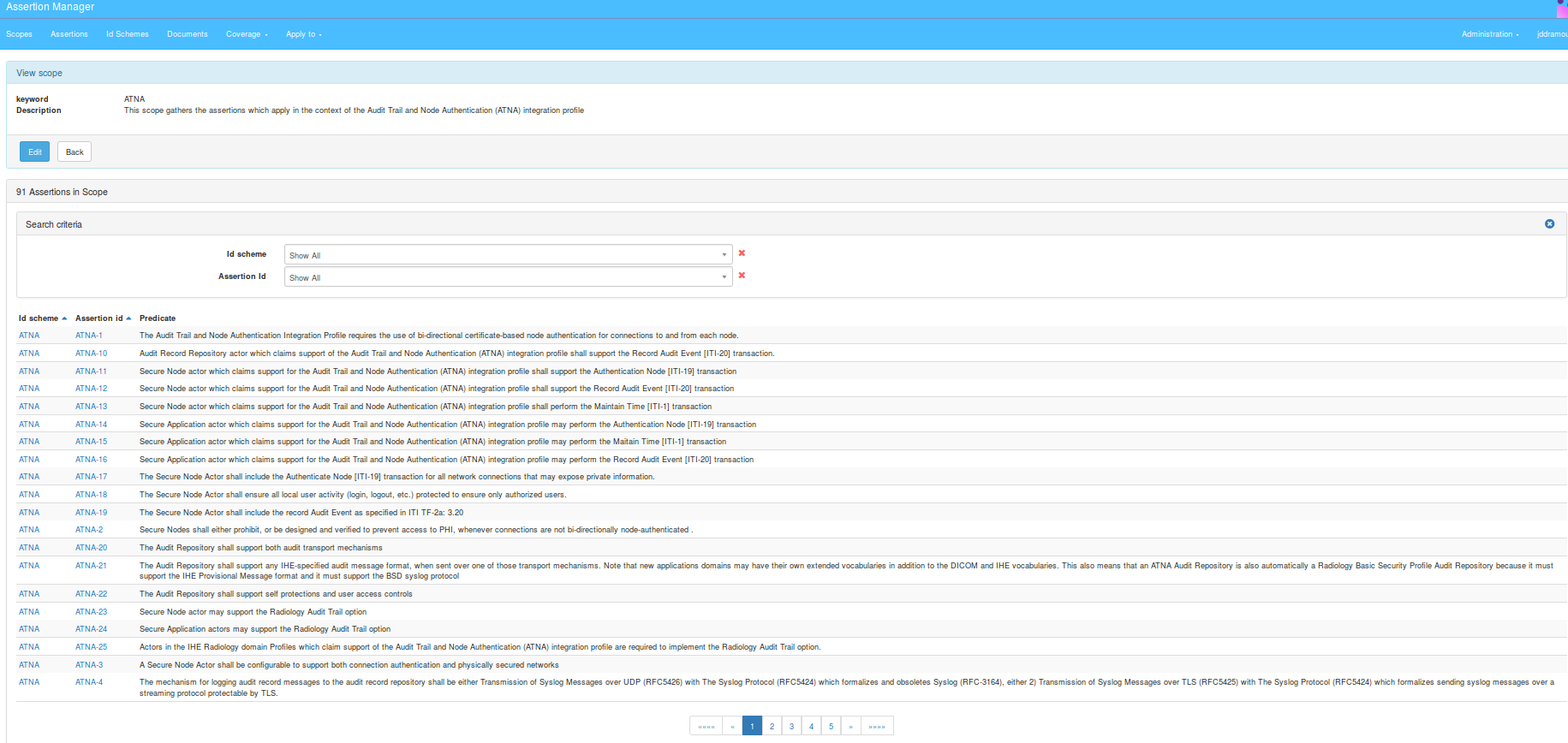 Assertion Manager is the Gazelle tool to handle the assertions that vendors shall respect to be compliant with a profile. Each profile is identified with a unique idScheme, which is associated with a PDF document, the official reference of the profile.