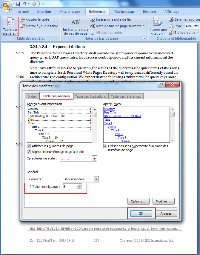 The first step consists in extracting the table of contents from the technical reference. The technical reference is often published in both DOC and PDF. If available in DOC format, consider downloading this file, and check that the document is properly formated (with numbered sections). The document have probably a table of content, but it may not be fully detailed. It’s very important to have the most detailed table of contents you can have.