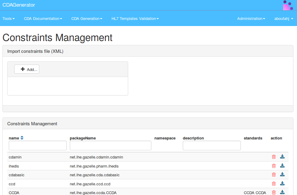 After the upload process is complete, click on the button “Delete and Generate”. This button will delete all the constraints related to packages that are mentioned in the uploaded XML file. If there are some constraints related to other packages, there will not be deleted. All the informations of the XML document are inserted in the database of the tool.