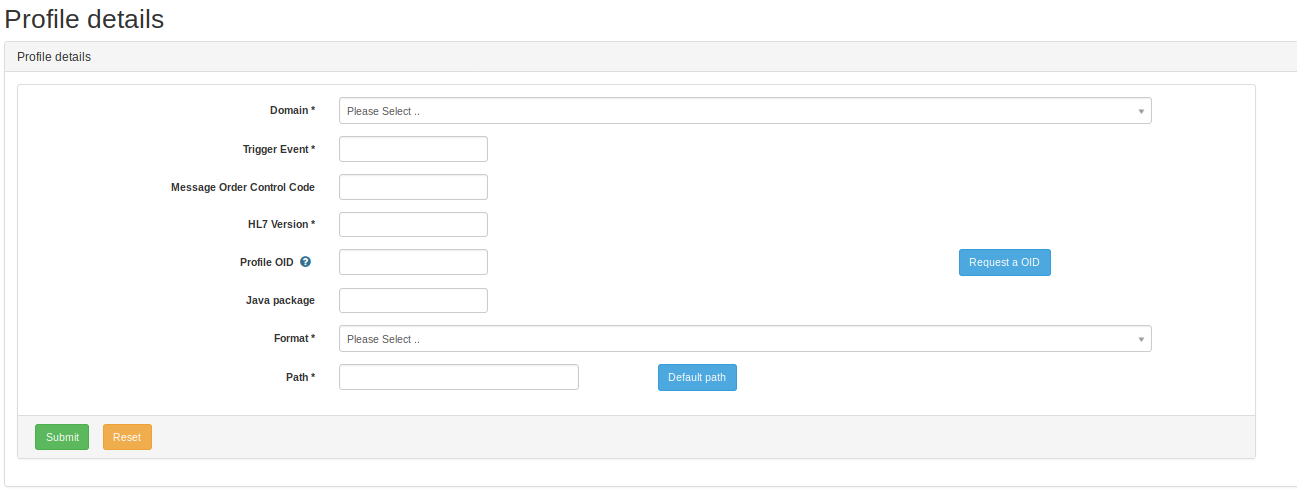 Finally, upload the XML file representing the conformance profile. As soon as the form is filled and the file is uploaded a button
