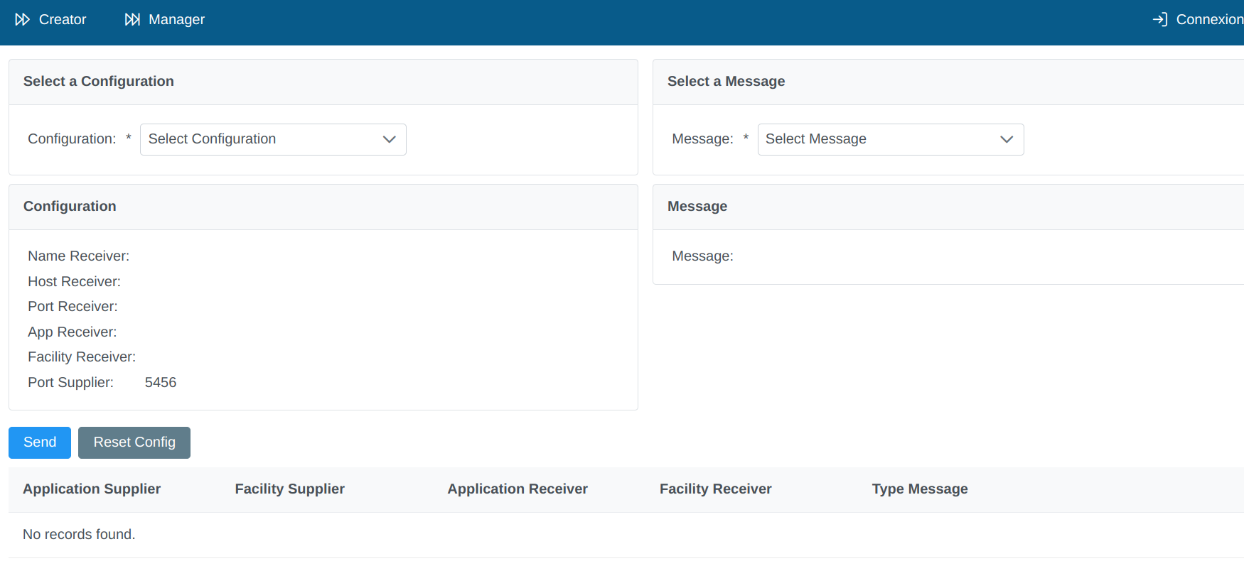 There are two things that must be configured before sending a message. First a message should have a destination, so the creator need a Configuration SUT to be selected this will represent the destination where you want the message to be sent. It is possible to use default configuration ,but it can be custom on the preferences’ menu.