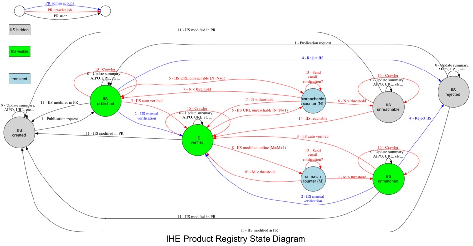 The following diagram describes all the possible states in the process of the publication of an IHE Integration Statement in the Product Registry.