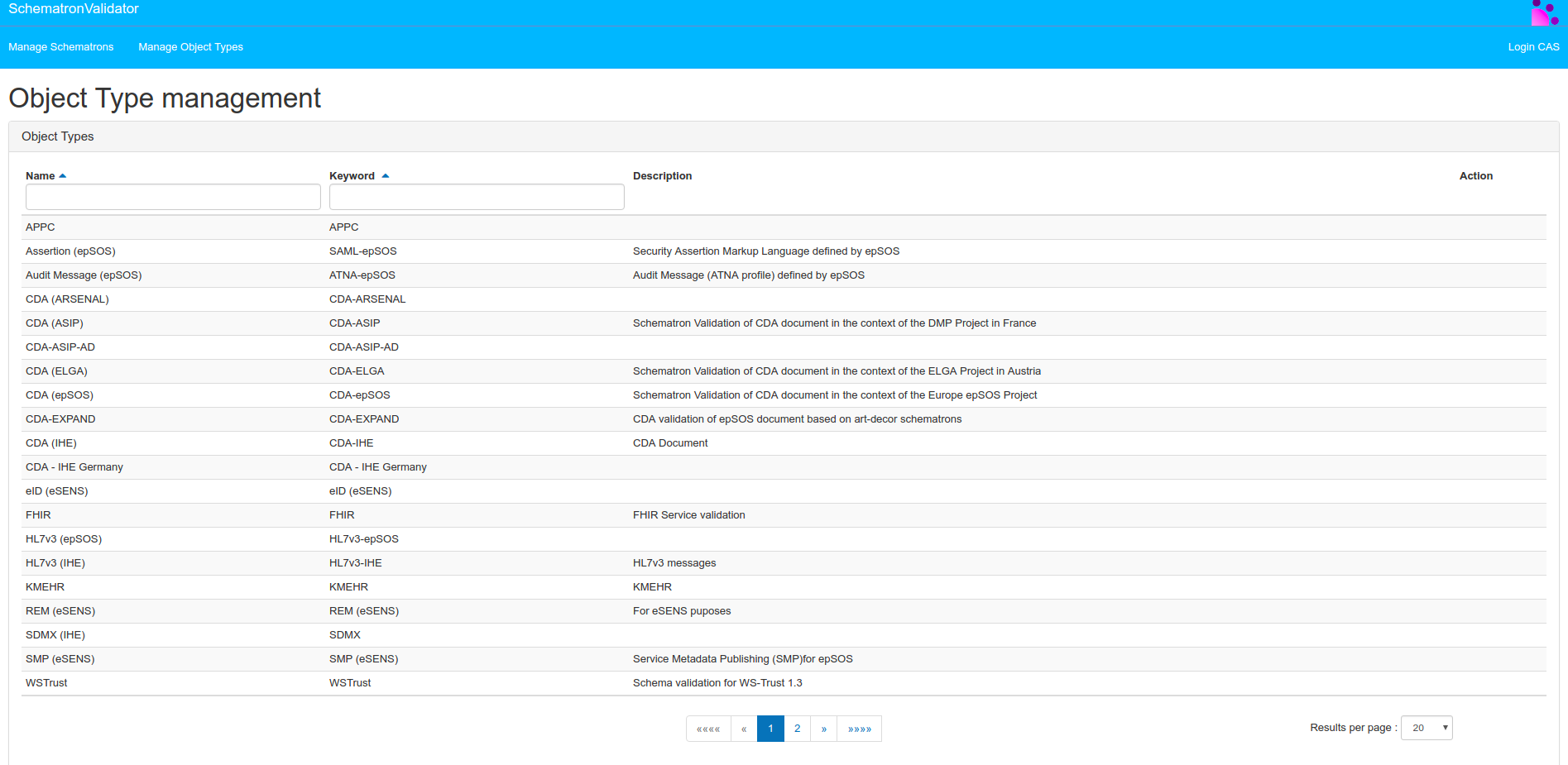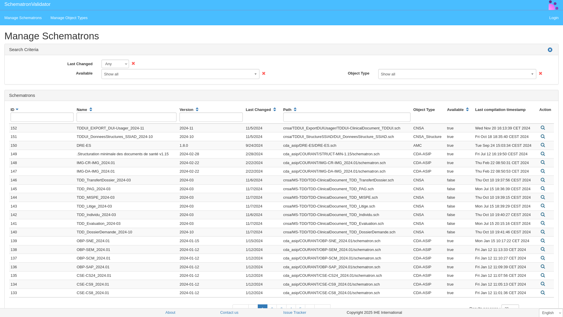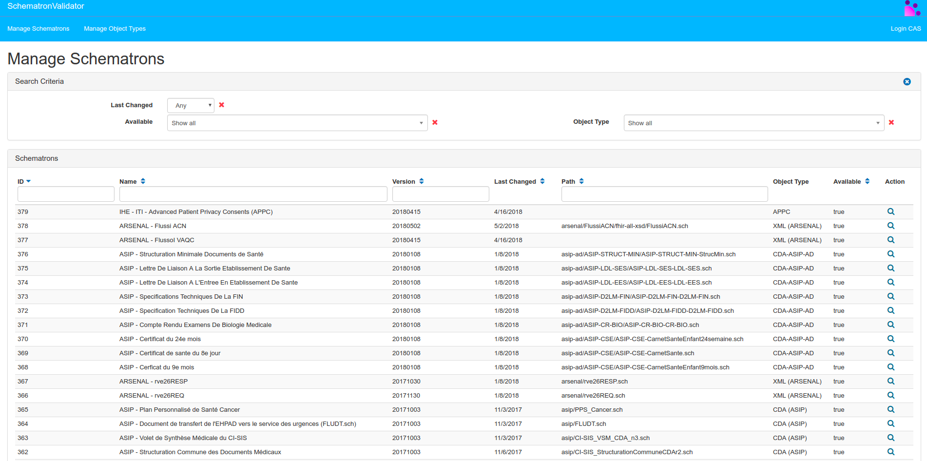 The Web interface Schematron Validator enables the administrator of the application to register new schematrons and update schematrons version: