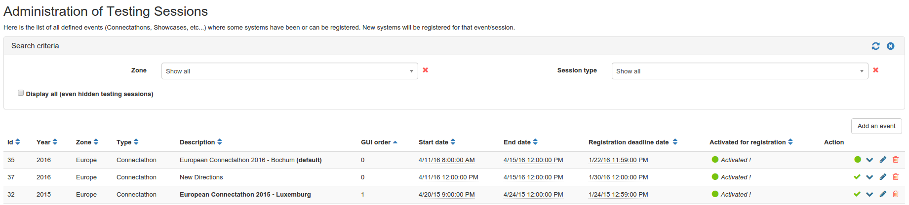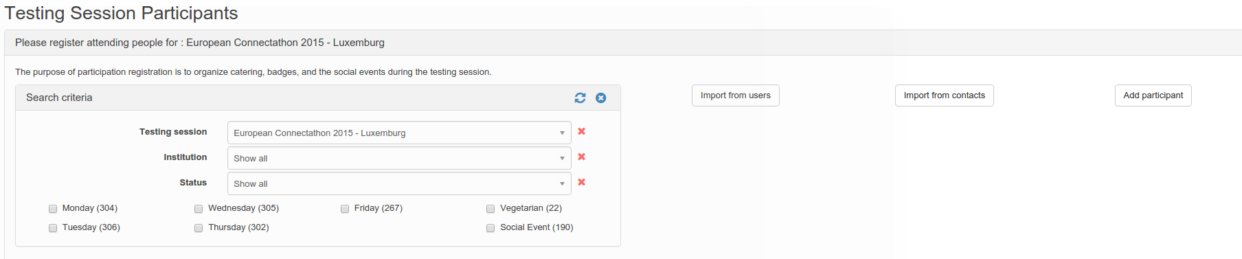 It gives the administrator an overview of users attending to the connectathon. It helps planning the catering, tables…