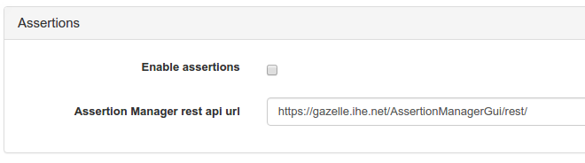 Allows to show or to hide assertions link to a test. This sections is linked to assertion manager via the property ‘Assertion Manager rest api url’ (example: https://gazelle.ihe.net/AssertionManagerGui/rest/)