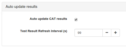 Auto update CAT results : this section shall be selected during testing session registration and execution, no need to it otherwise