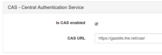 This section allows to link the gazelle TM to a cas service, or to use local database of the TM tool.