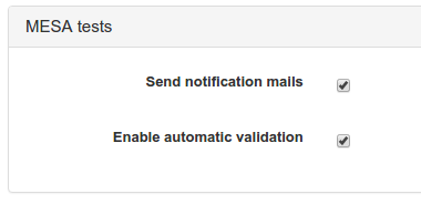 This section allows to configure the behaviour of pre-cat tests : automatic validation and mail notification