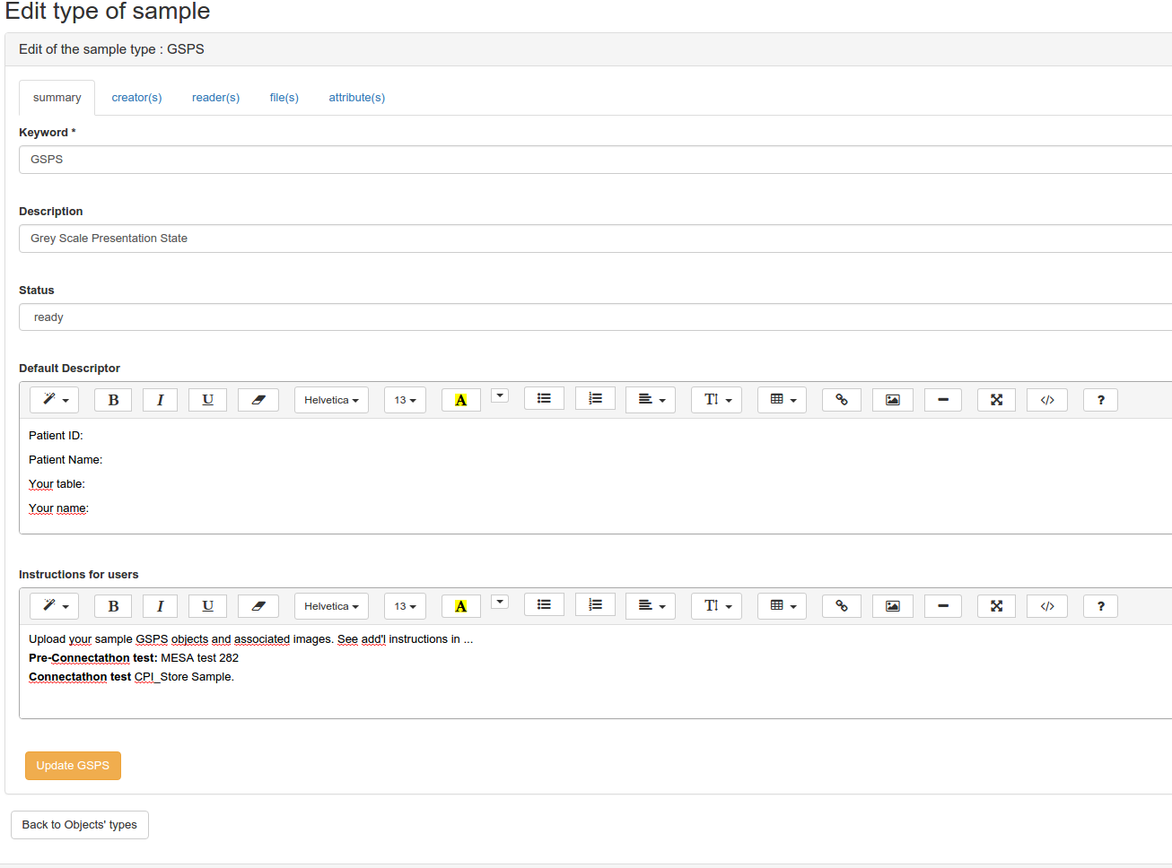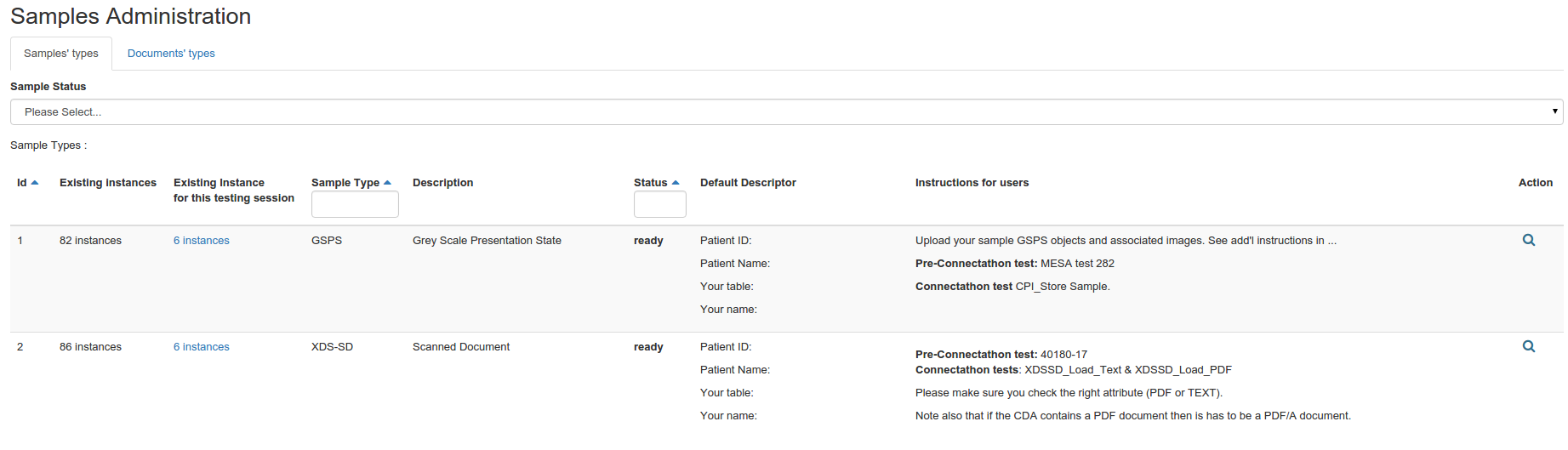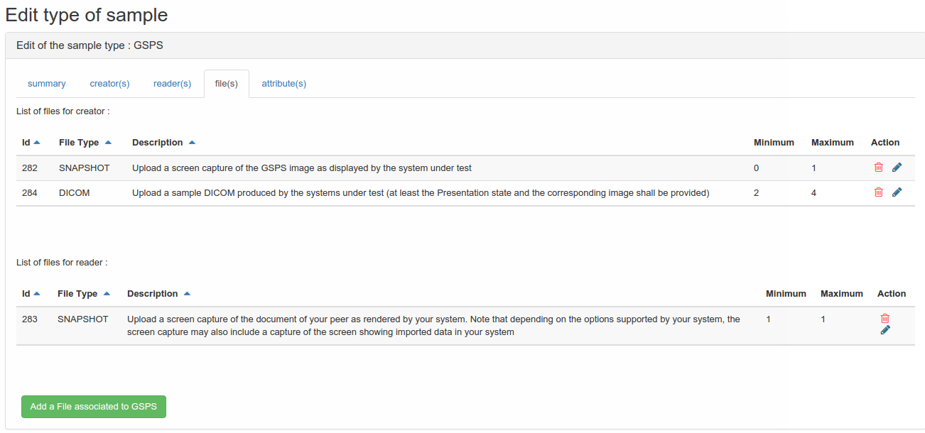The sample type view mode is accessible for the admin of Gazelle TM when the tool act as Test Management mode, or as master model mode. However, the edition of samples type is accessible only when master model mode is activated.