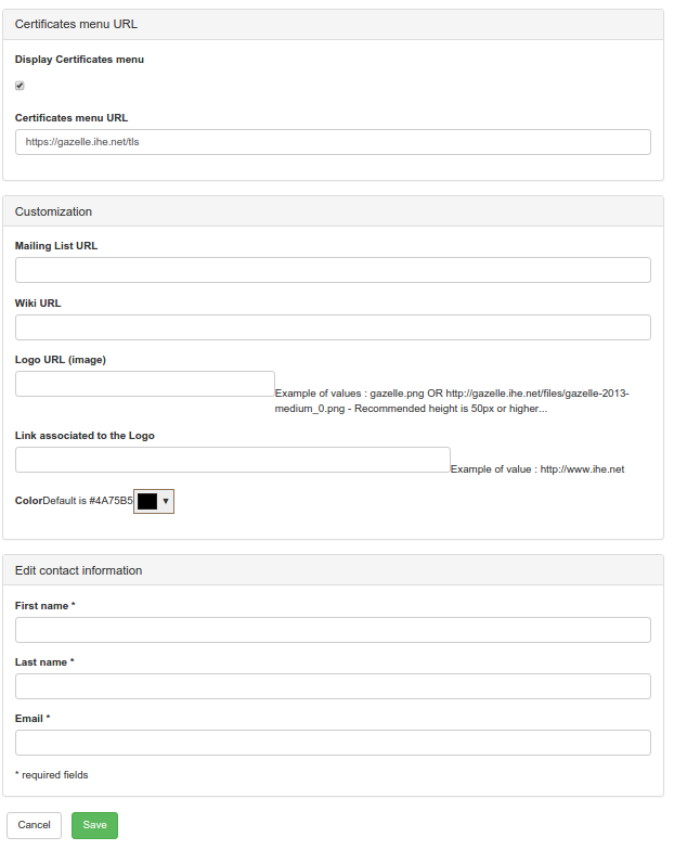 This page contains multiple sections allowing to configure the different behaviours and modules of gazelle.