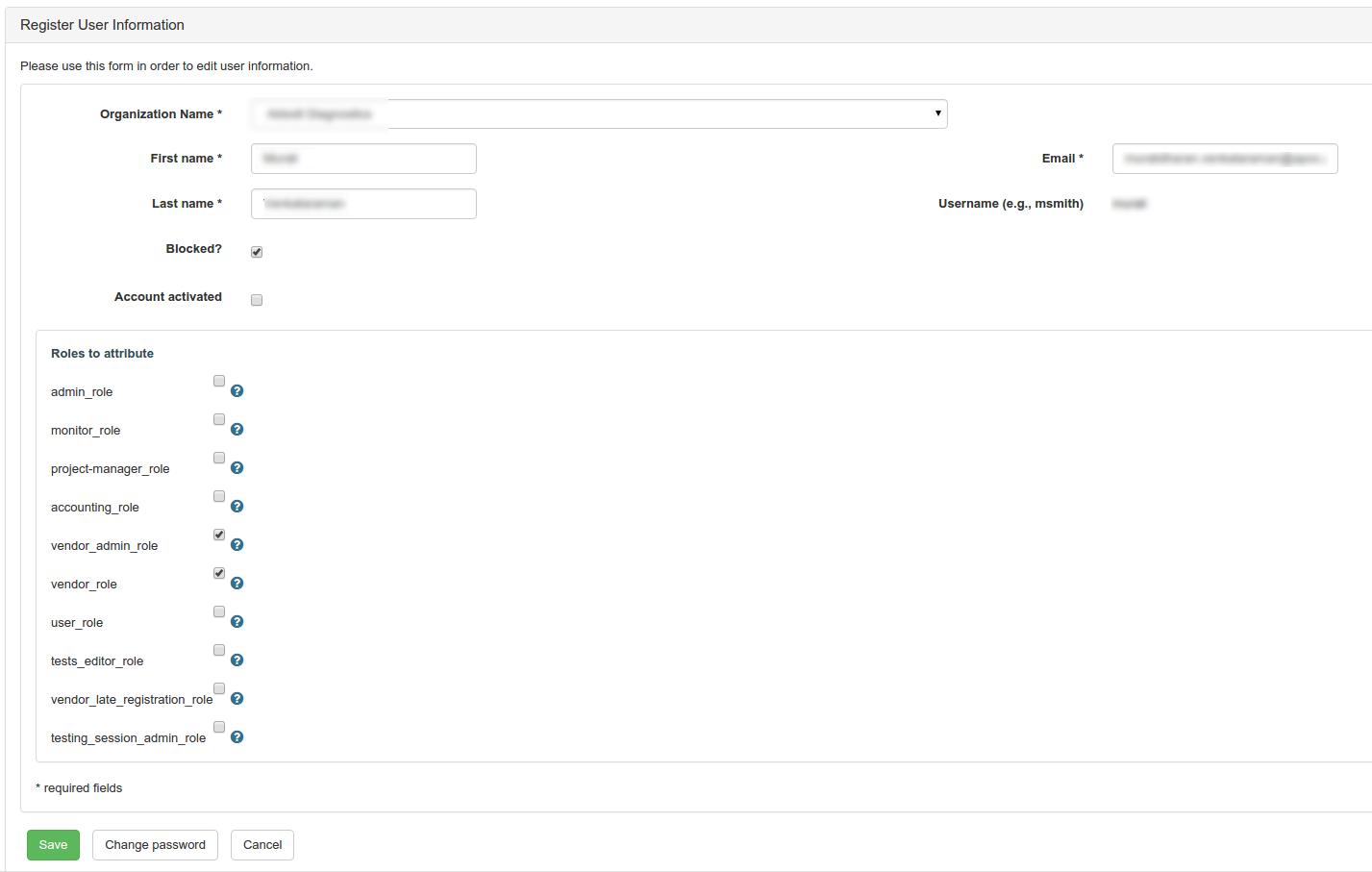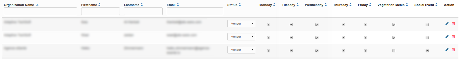 The admin can manage user registration, for all the companies, vendor_admin can do so for users registered for his company.