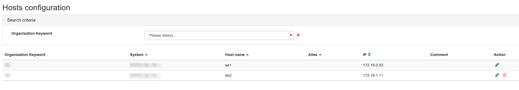 Note that if you select an Organization in the filter available at the top of the page, you will get a button to generate the configurations for all the systems owned by this organization; if you select a system from this same filter, you will get a button to generate the configuration for this specific system.