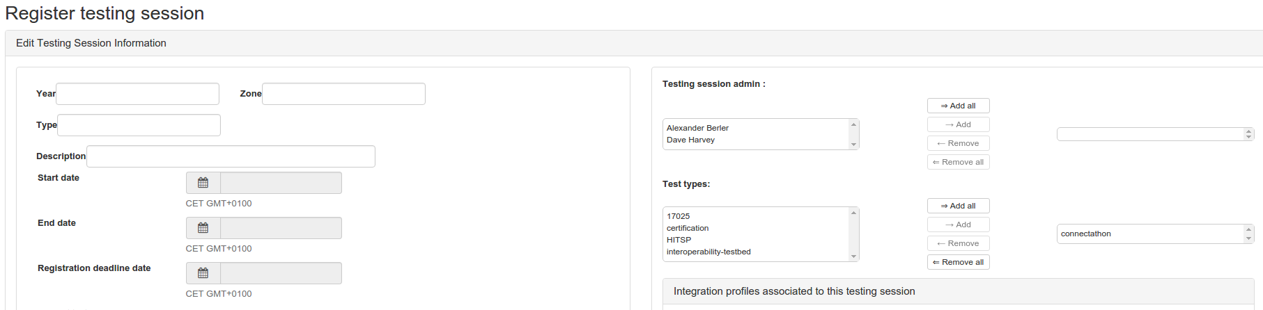 The administrator has an overview of who is going to attend the connectathon on moday, tuesday….
