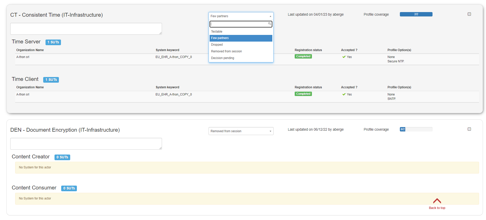 An administrator can remove a connectathon participant, or edit it.