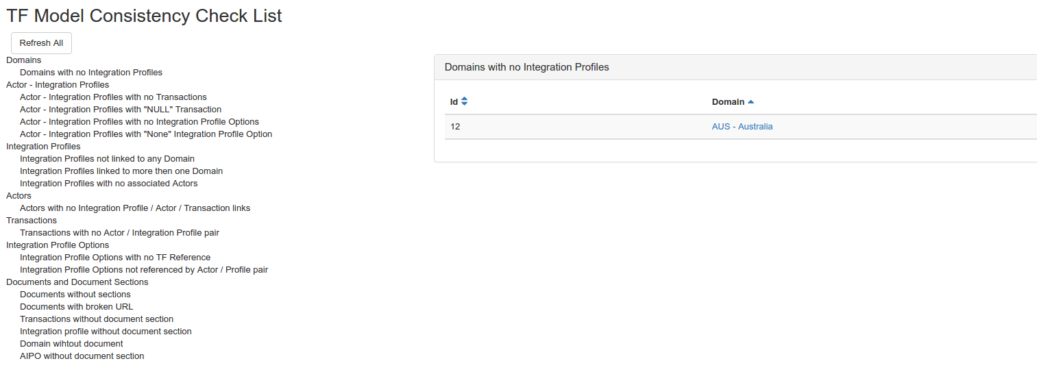 This module allows the admin to check the consistency between the different profiles/actors/domain defined in the database.