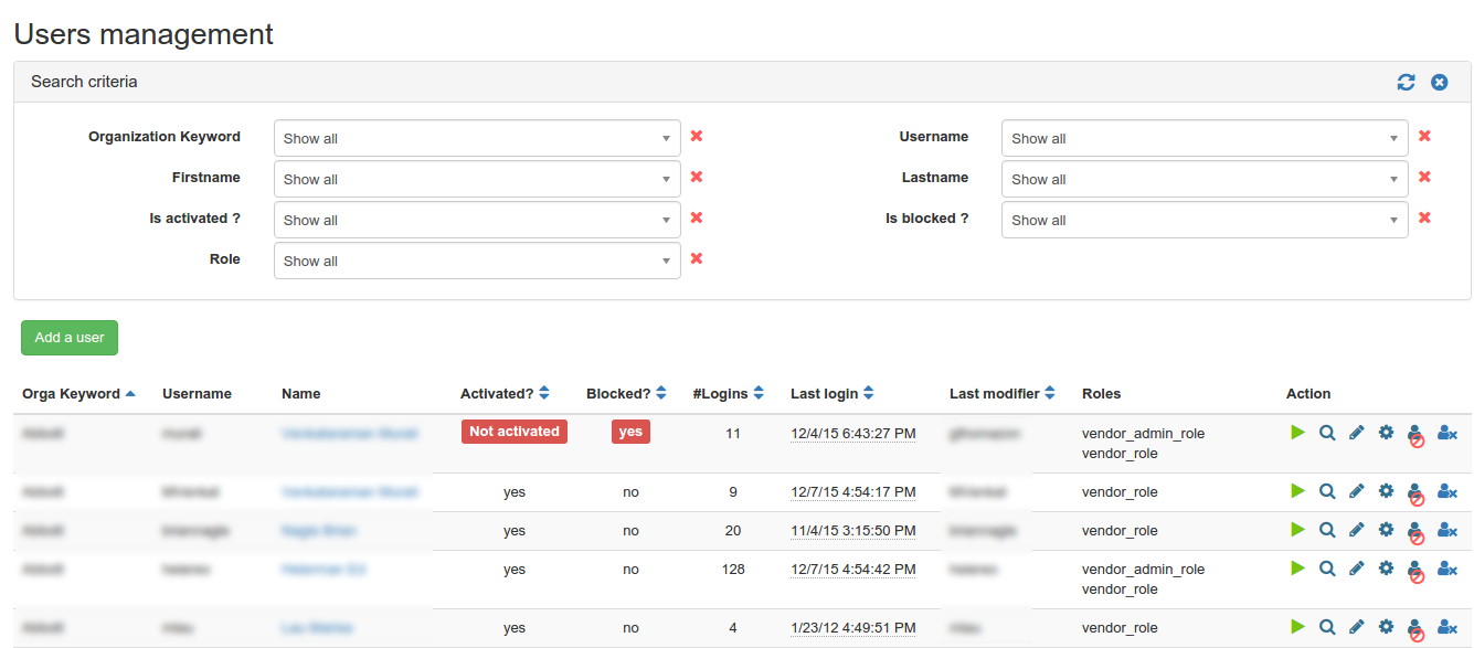 To do so, the admin shall go to menu → Administration → Manage users